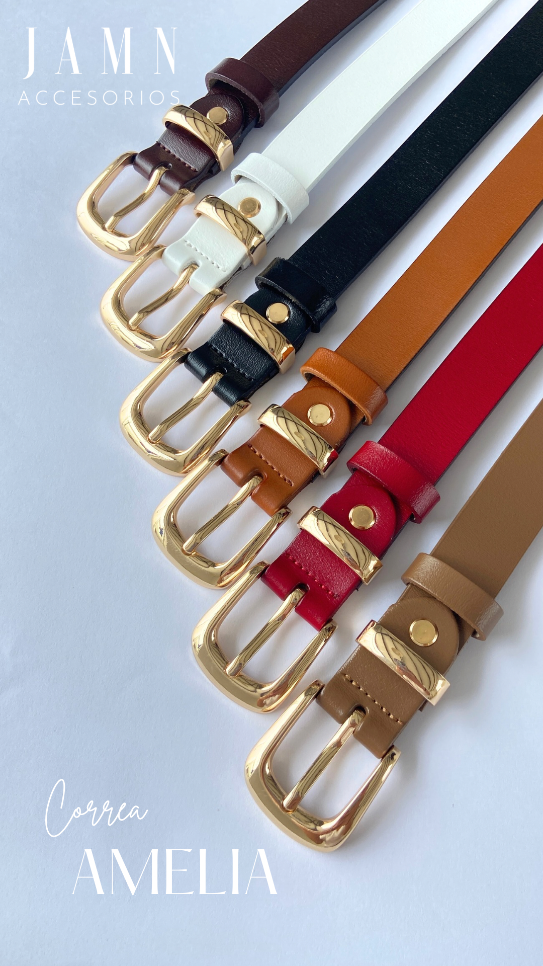 La Correa de Cuero Amelia es ese accesorio infaltable que completa y estiliza cualquier look. Su diseño clásico y elegante combina perfecto con jeans, pantalones efecto cuero, faldas o vestidos.